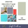 Τα ακρυλικά ματ χρώματα για το Decoupage προσθέτουν απλή κομψότητα σε κάθε διακοσμητικό έργο.Η έλξη τους έγκειται στις απόλυτα ταιριαστές χρωματικές αποχρώσεις. Ζεστό γκρι γραφίτη, φιλικό κίτρινο λεμονί ή βαθύ πράσινου του έλατου. Κάθε άτομο επιλέγει ακριβώς τη σωστή απόχρωση για τη μοναδική του δημιουργία. Τα έντονα χρώματα εξασφαλίζουν αξιόπιστη εφαρμογή. Αποτελούν την επιτομή της απλότητας.Στεγνώνουν γρήγορα προσδίδοντας ομοιόμορφη κάλυψη.Η κρεμώδης σύσταση και η ευχάριστη μυρωδιά που έχουν αυτά τα υπέροχα ακρυλικά χρώματα, κάνουν την καρδιά κάθε λάτρη του DIY..να χτυπά πιο γρήγορα όταν τα χρησιμοποιεί στα έργα του. Ιδανικά για όλες τις διακοσμητικές δημιουργικές εργασίες.Μπορούν να εφαρμοστούν με πινέλο ή ρολό βαφής σε μία σειρά από επιφάνειες όπως ξύλου, χαρτιού, χαρτονιού, φελιζόλ, πέτρας, αποξηραμένου σκυροδέματος, τερακότα, γυαλιού, κεραμικών, αυτοσκληρυνόμενου πηλού μοντελοποίησης κ.α.